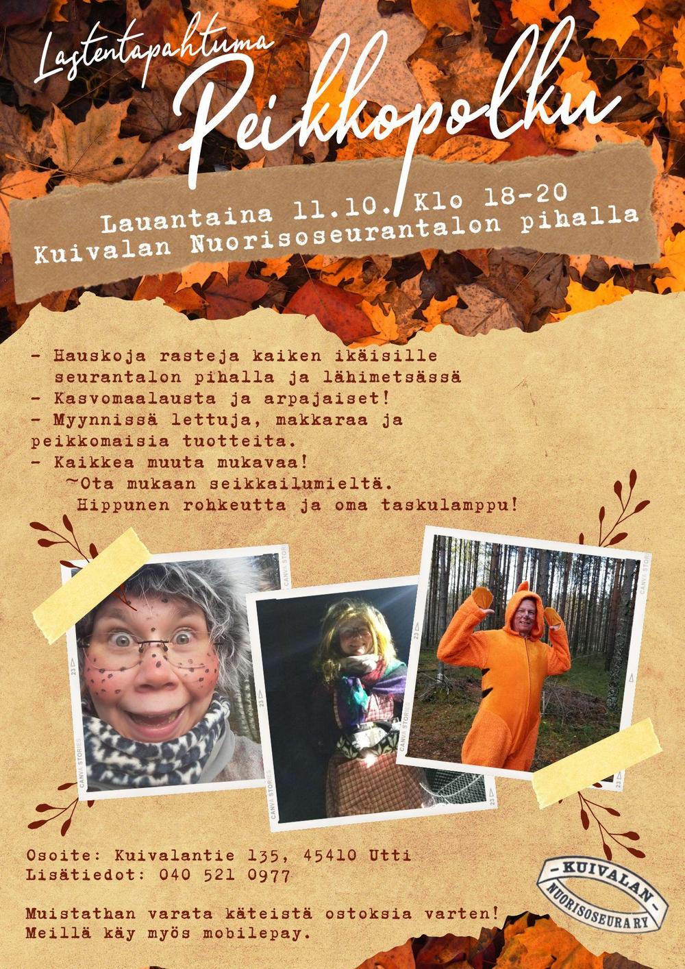 Meillä Kuivalassa on perinteisesti syksyisin järjestetty lastentapahtuma Peikkopolku.